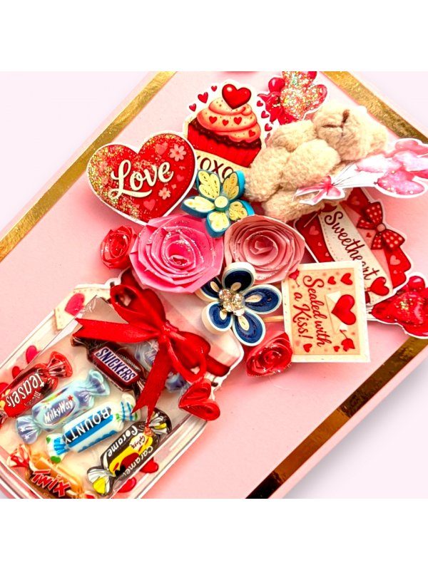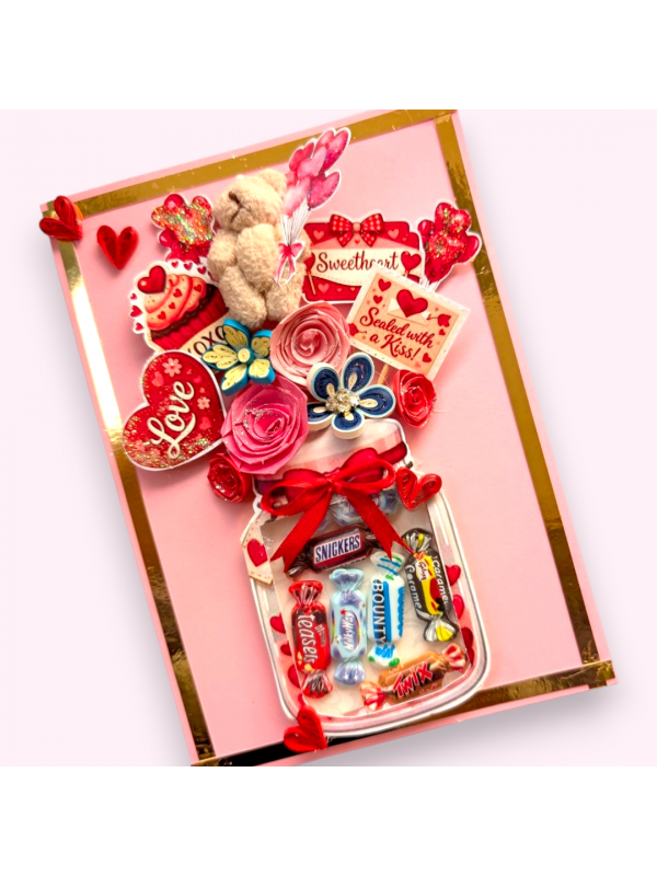 These are cute artificial candies filled in the shaker jar with many love quotes and a cute teddy holding balloons.
