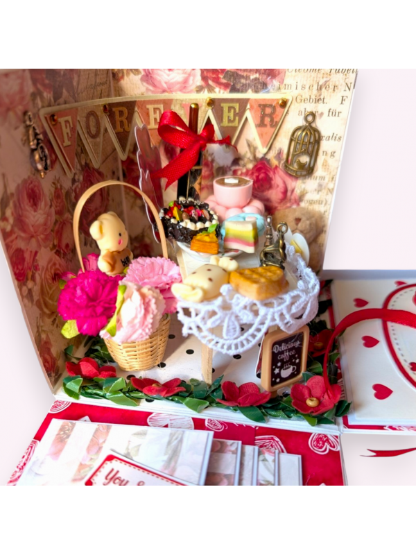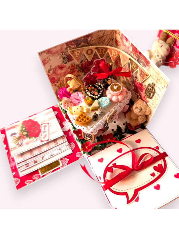 Cute Miniatures Love and Birthday explosion box which can include 10 pictures.