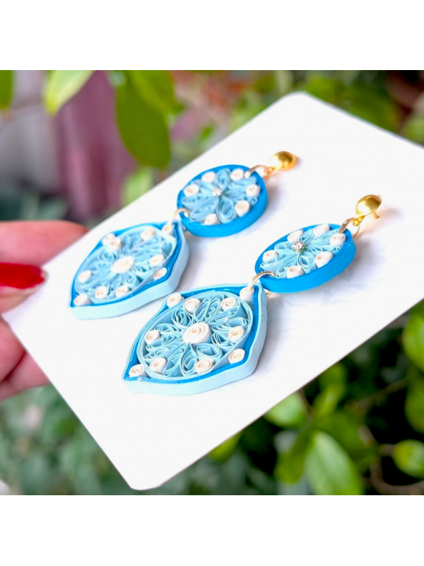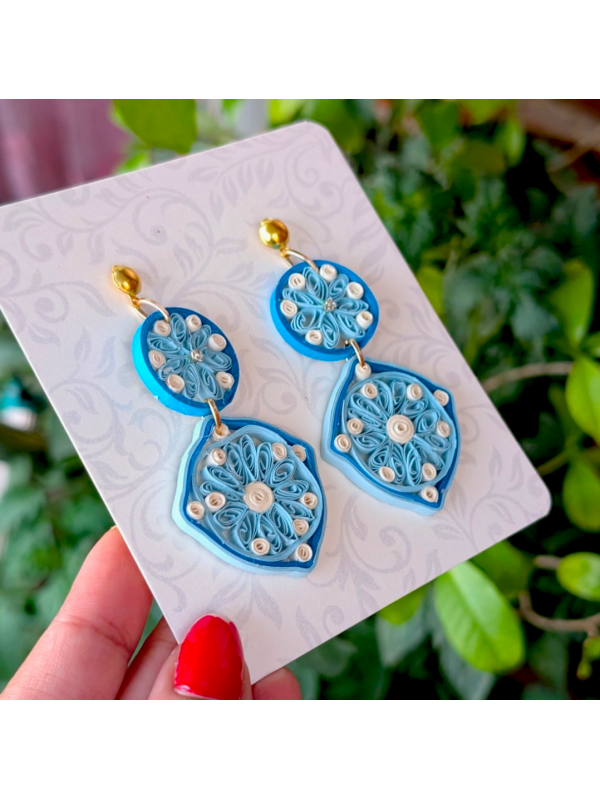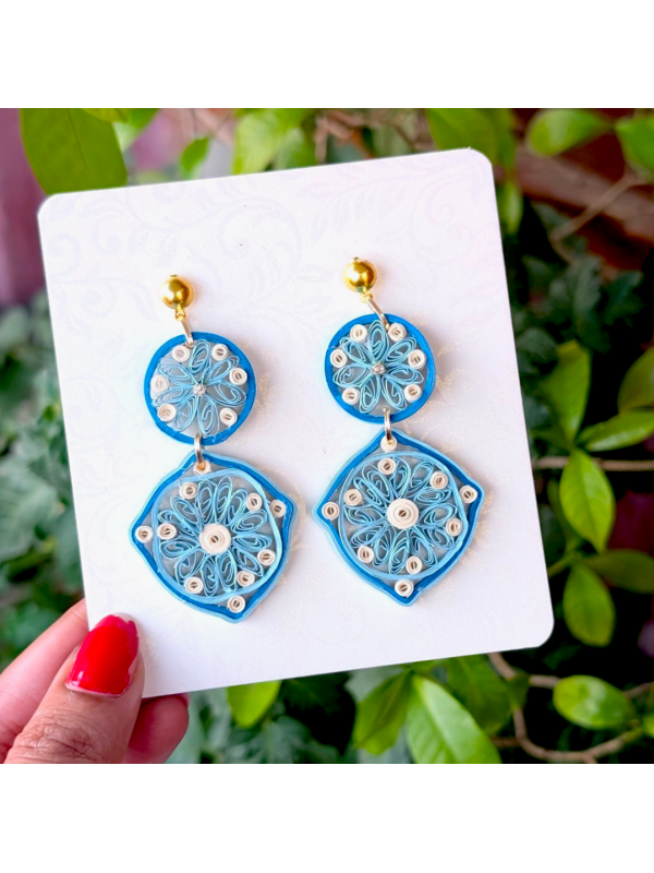 Quilled Paper Diamond Earring - Blues