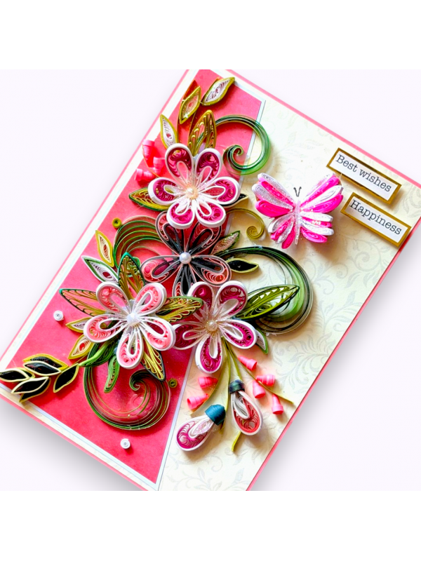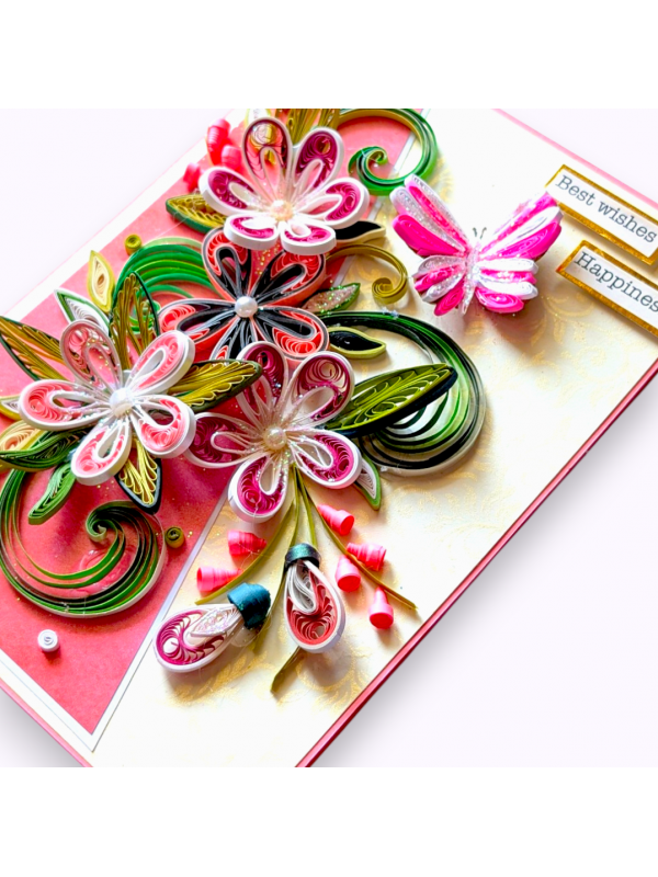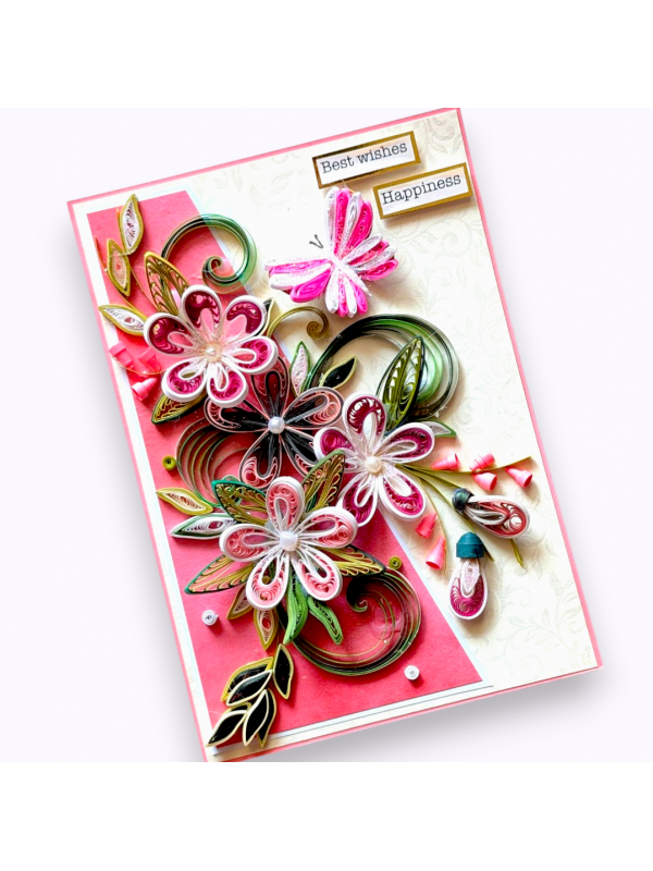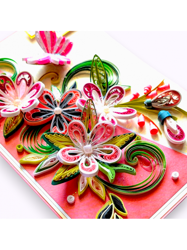 Pink Quilled Flowers Greeting Card