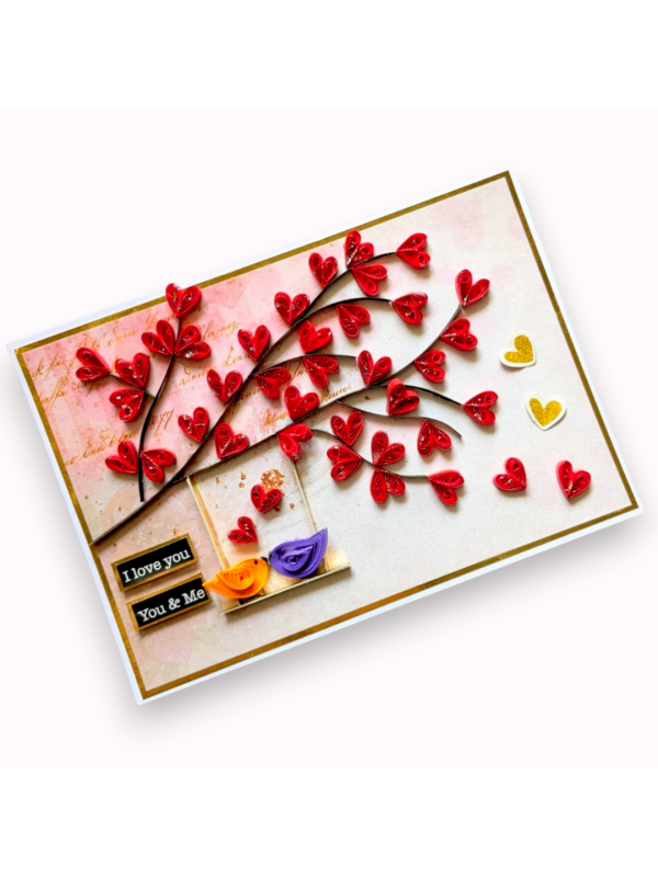 Quilled hearts and Love Birds Greeting card