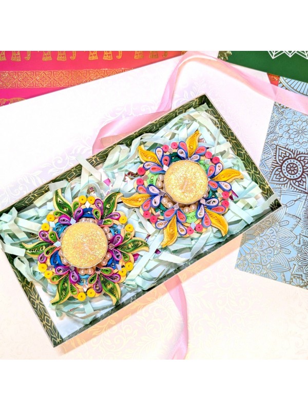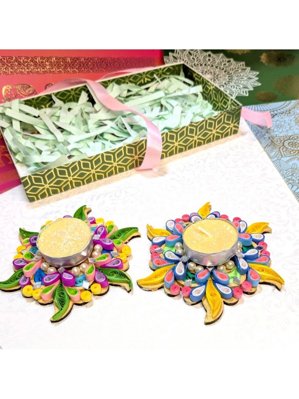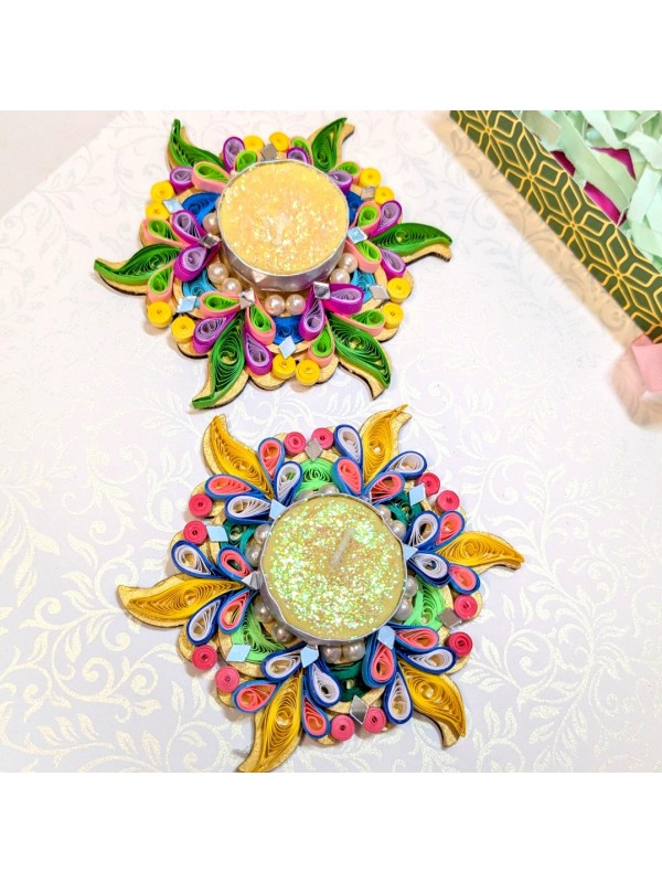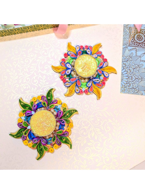 Celebrate the Festival of Lights with elegance and warmth! These beautiful handmade quilled tealight candle holders are crafted with love and precision, bringing together traditional charm and artistic flair. Each piece is made using intricate paper quilling techniques, forming delicate floral and festive designs that radiate beauty and craftsmanship.