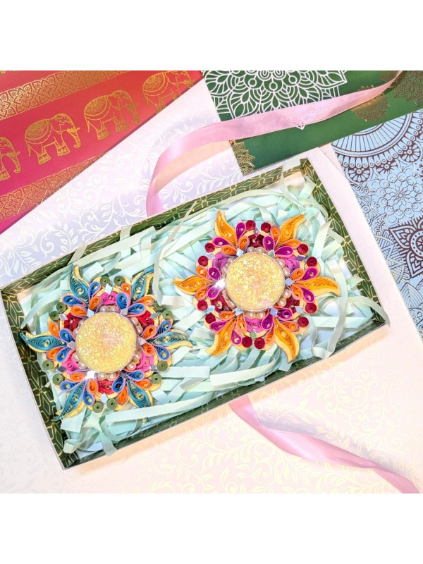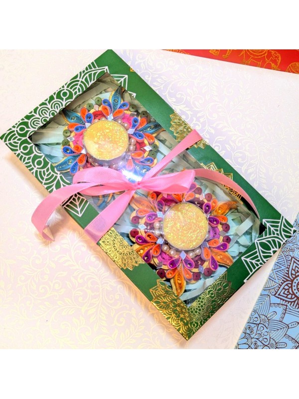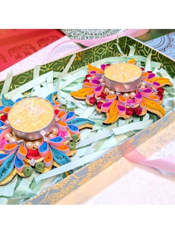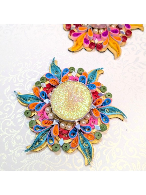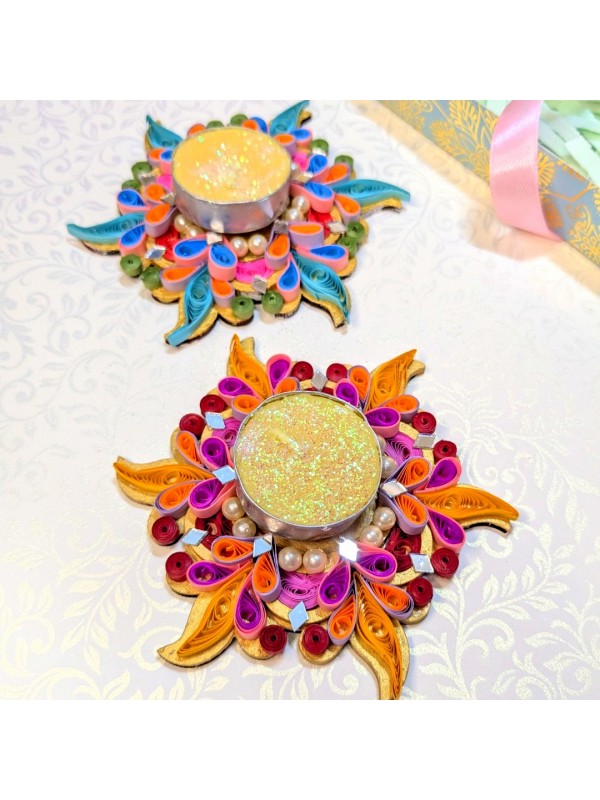 Celebrate the Festival of Lights with elegance and warmth! These beautiful handmade quilled tealight candle holders are crafted with love and precision, bringing together traditional charm and artistic flair. Each piece is made using intricate paper quilling techniques, forming delicate floral and festive designs that radiate beauty and craftsmanship.