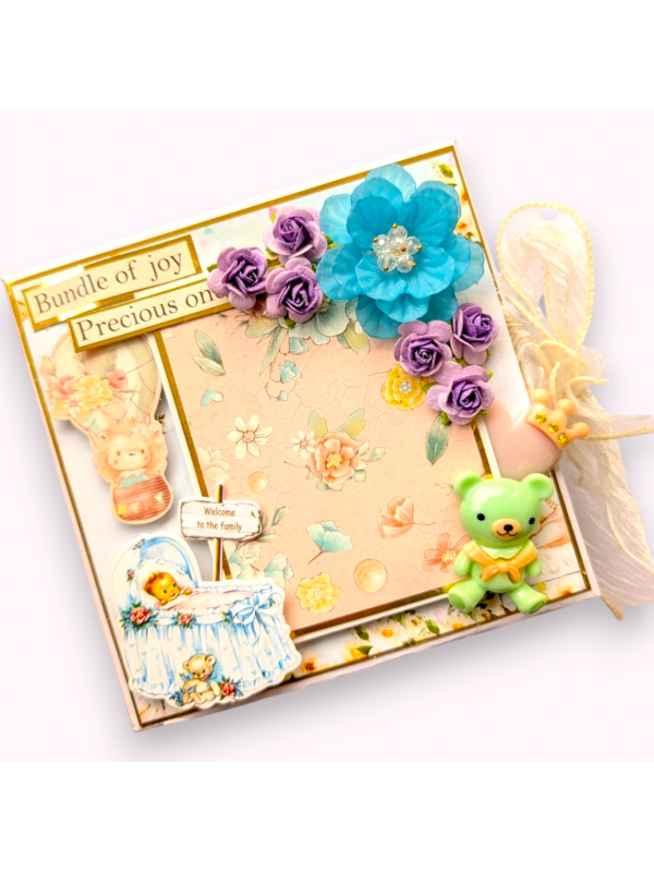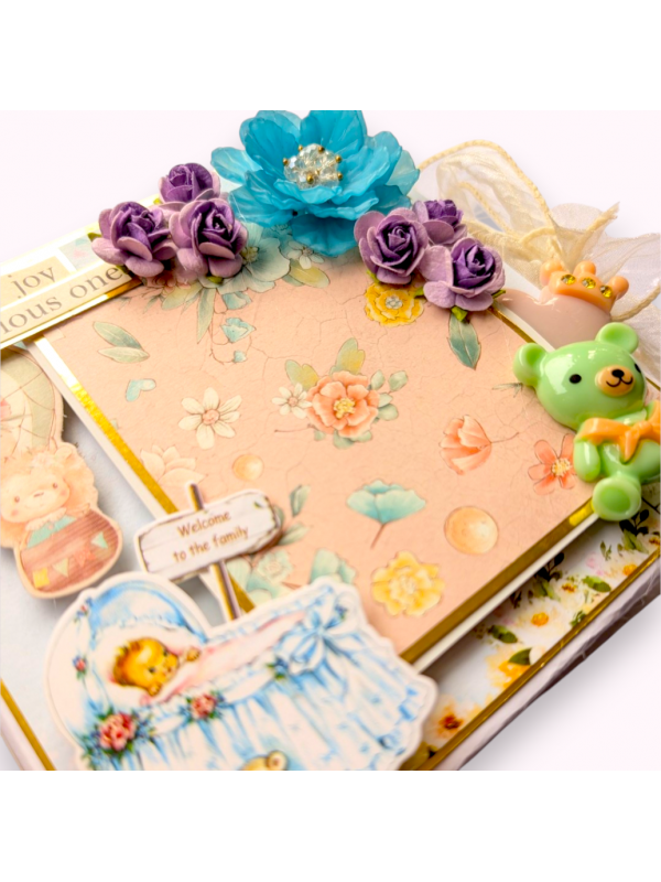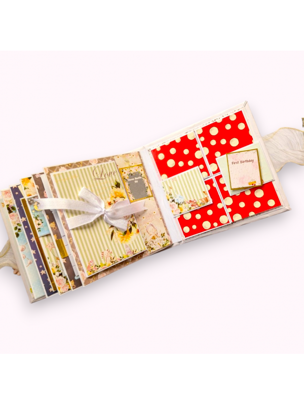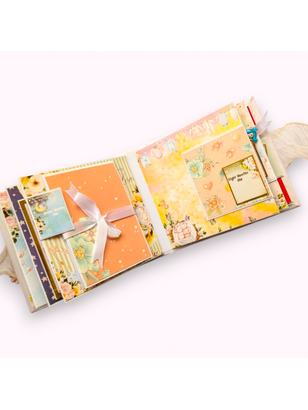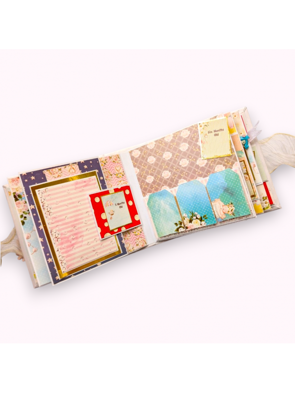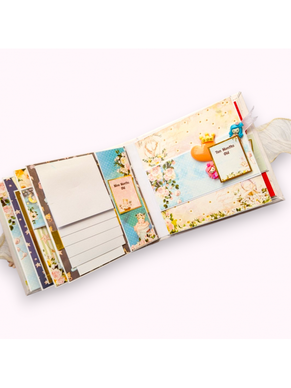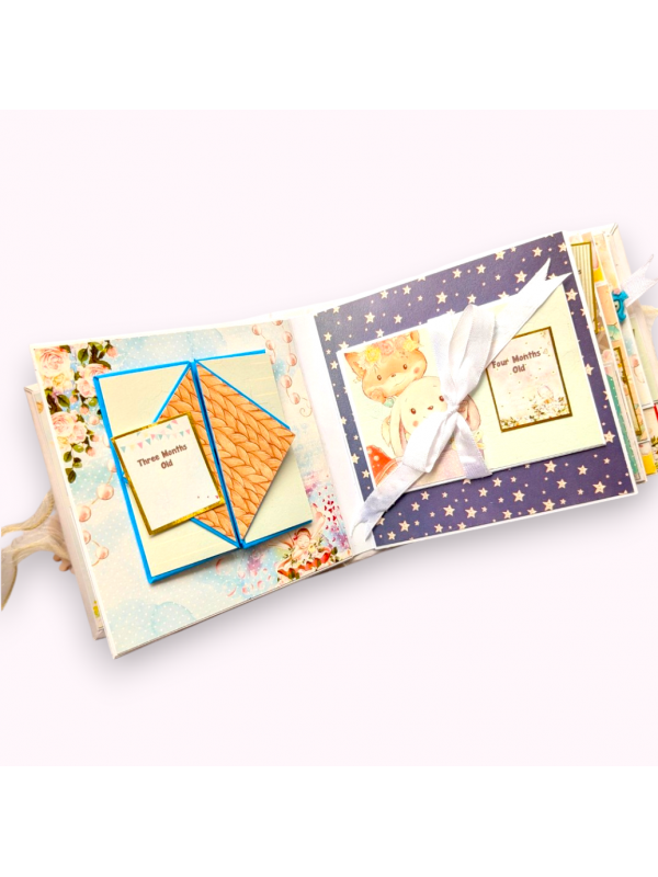Sparkling Unisex Baby Scrapbook with a theme of 1 month to 1st Birthday. Yes! you can store your best memories of baby since birth to 1 year. Its a beautiful interactive budget friendly baby scrapbook. Can hold upto 35 pictures and some messages.