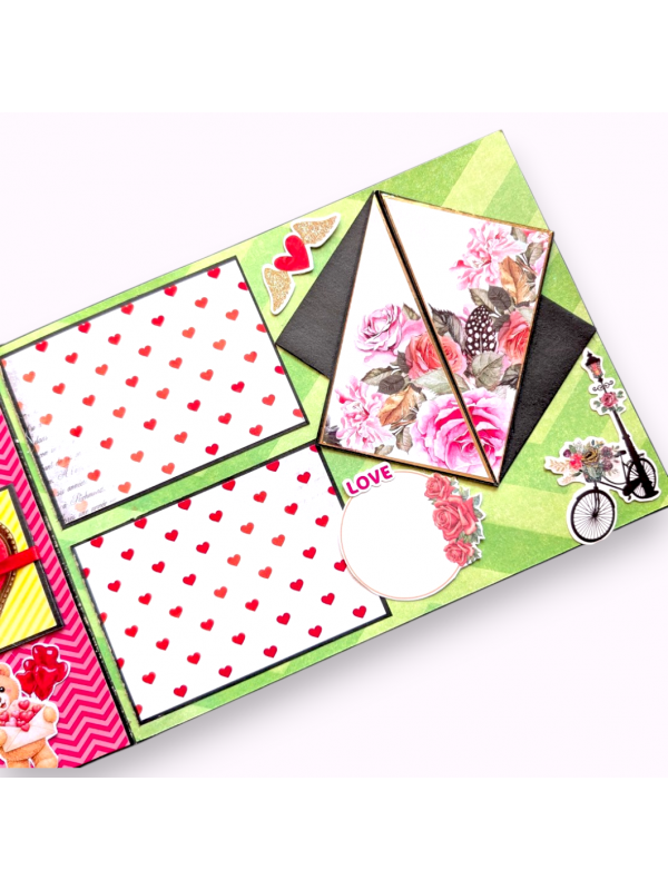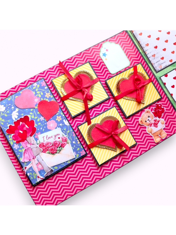 Sparkling Valentine Mini Scrapbook Gift which has 3 pages and in A4 sized book and can upto 15 pictures can be inserted and some messages.